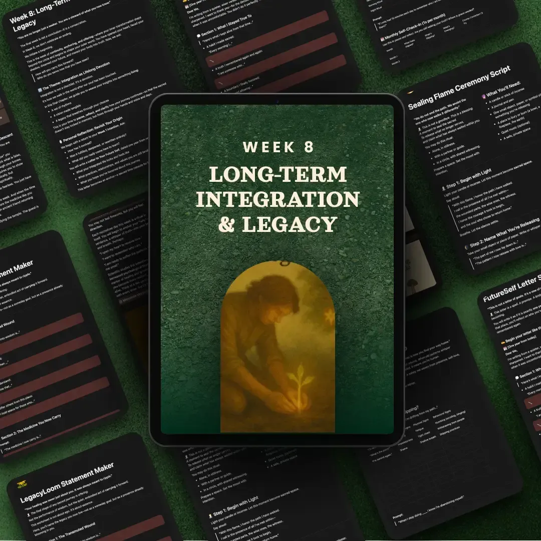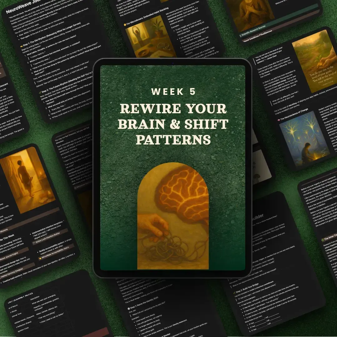 We don’t just give you information—we walk you through transformation. Our method blends neuroscience, somatic integration, ritual, and reflection, all inside a beautifully guided Notion workspace. No fluff. Just deep, grounded change.